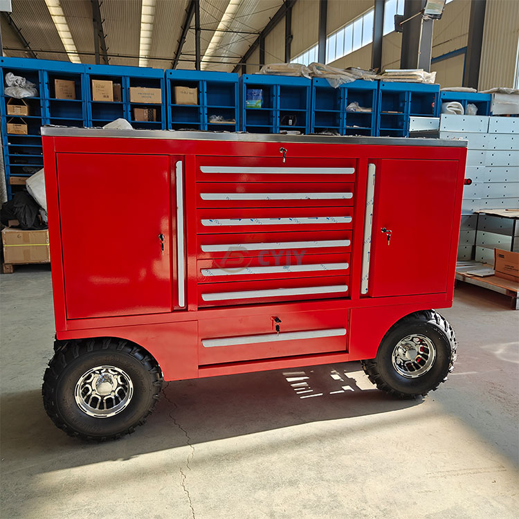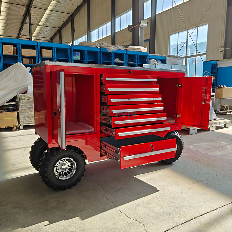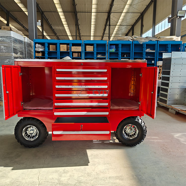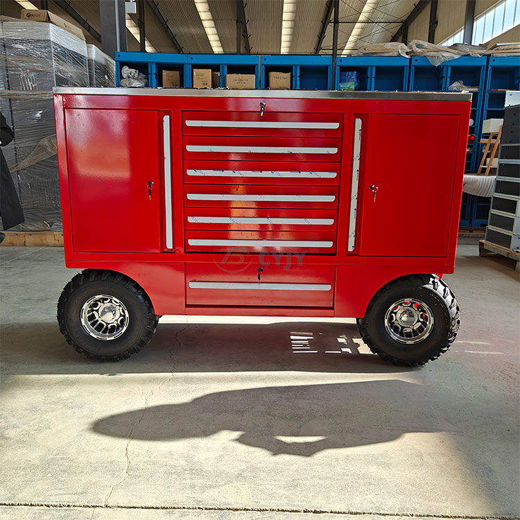 Ten zaawansowany wielofunkcyjny pojazd narzędziowy jest niewątpliwie prawą ręką współczesnych rzemieślników i operatorów zewnętrznych. Uderzająca czerwona szafka narzędziowa nie tylko dodaje odrobinę koloru do szarego miejsca pracy lub otoczenia na zewnątrz, ale także symbolizuje jej potężną użyteczność i trwałość. Spód wózka narzędziowego wyposażony jest w dwa szerokie koła plażowe, które nie tylko nadają się do szybkiego poruszania się po płaskim terenie, ale także zapewniają stabilną jazdę nawet w błotnistym lub nierównym środowisku zewnętrznym, dzięki czemu nie musisz się martwić wózek narzędziowy nie może dosięgnąć kłopotów podczas pracy na zewnątrz.