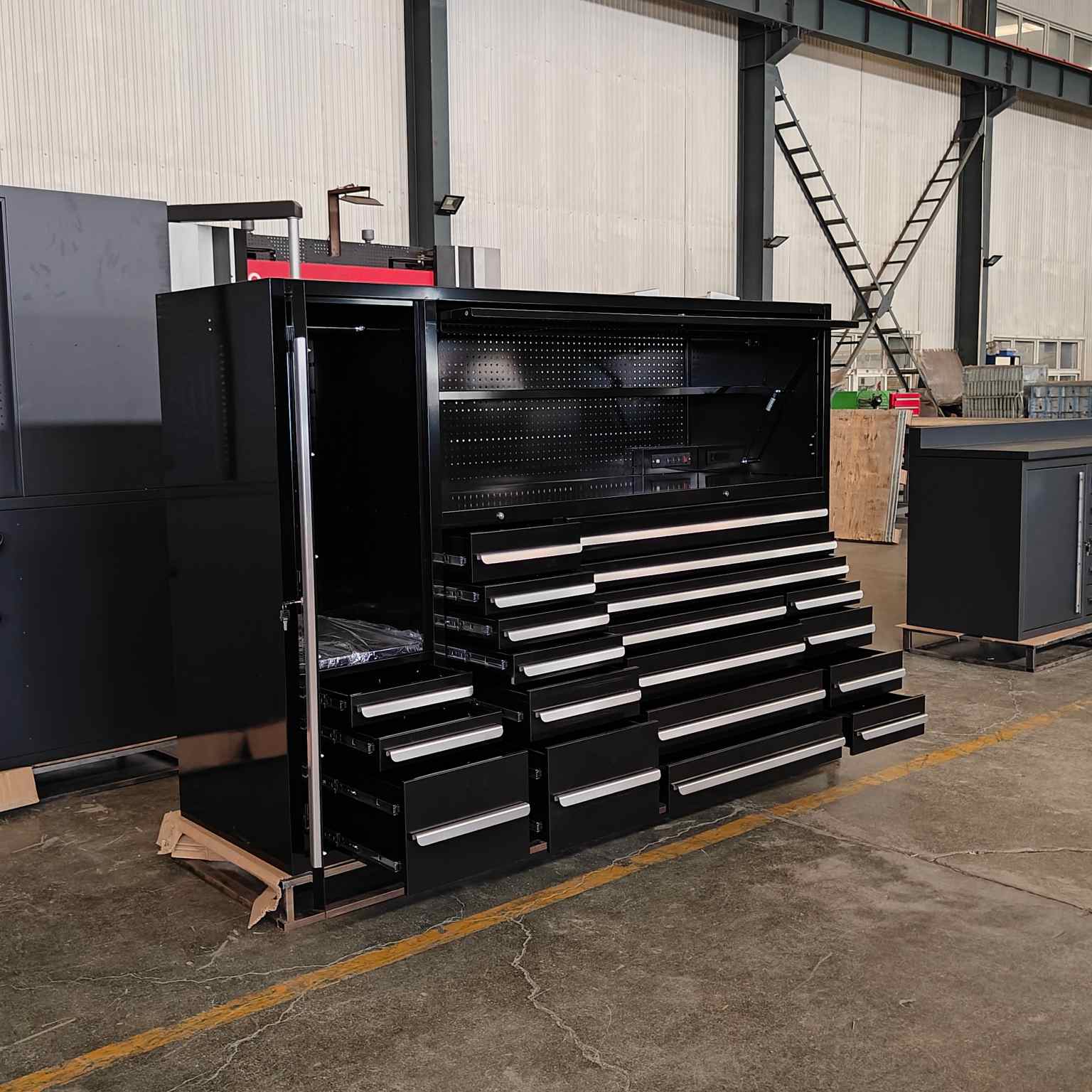 Czarna wielofunkcyjna szafka narzędzi wykonana jest ze stali z zimno, która zapewnia lepszą wytrzymałość i wykończenie powierzchni.CYJYmoże dostosować rozmiar, konfigurację i akcesoria do twoich potrzeb. Nasza czarna wielofunkcyjna szafka narzędzi może zintegrować funkcjonalność, zmniejsza ruch i zwiększa wydajność. Ma powłokę proszkową odporną na olej, chemikalia i ścieranie. Wreszcie i co najważniejsze, spełnia standardy branżowe.