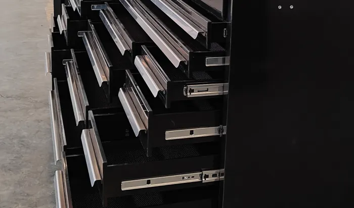 Silent Slide Rails: Czarna wielofunkcyjna szafka narzędzi ma ciężkie ciche szyny zjeżdżalni, z gładką działaniem ciągnięcia i silną pojemnością łożyska obciążenia.