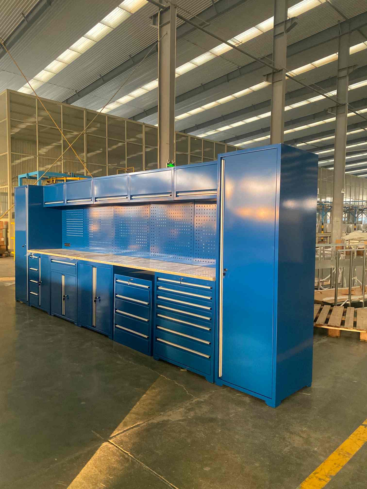 Kolor: Oprócz zwykłej przemysłowej szarości i czarnej szafka do przechowywania garażu może być dostosowana do przyciągających wzrok kolorów, takich jak pomarańczowy i niebieski, aby dopasować spersonalizowane style garażowe.