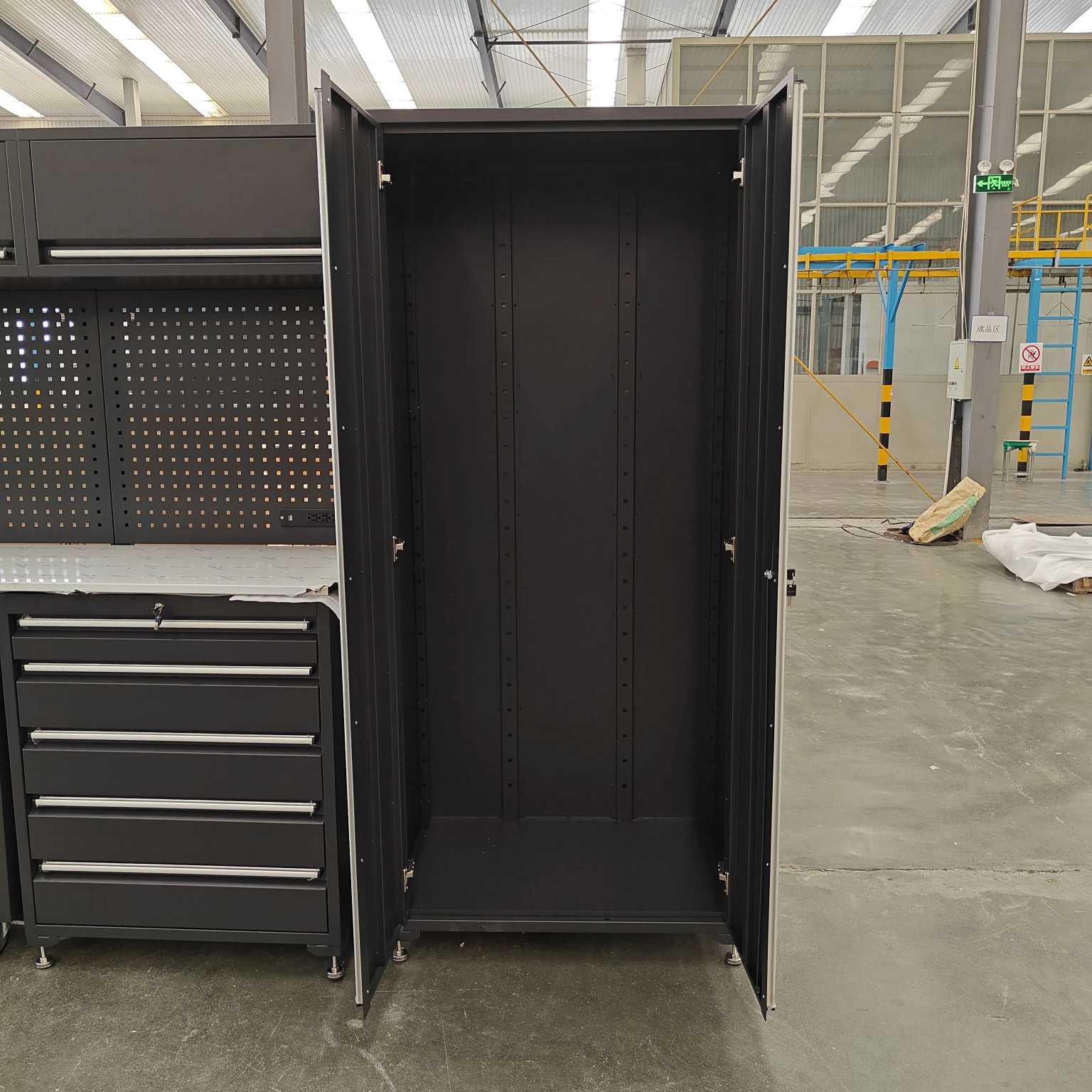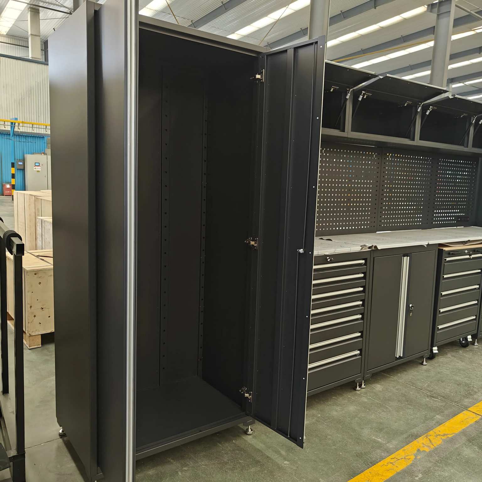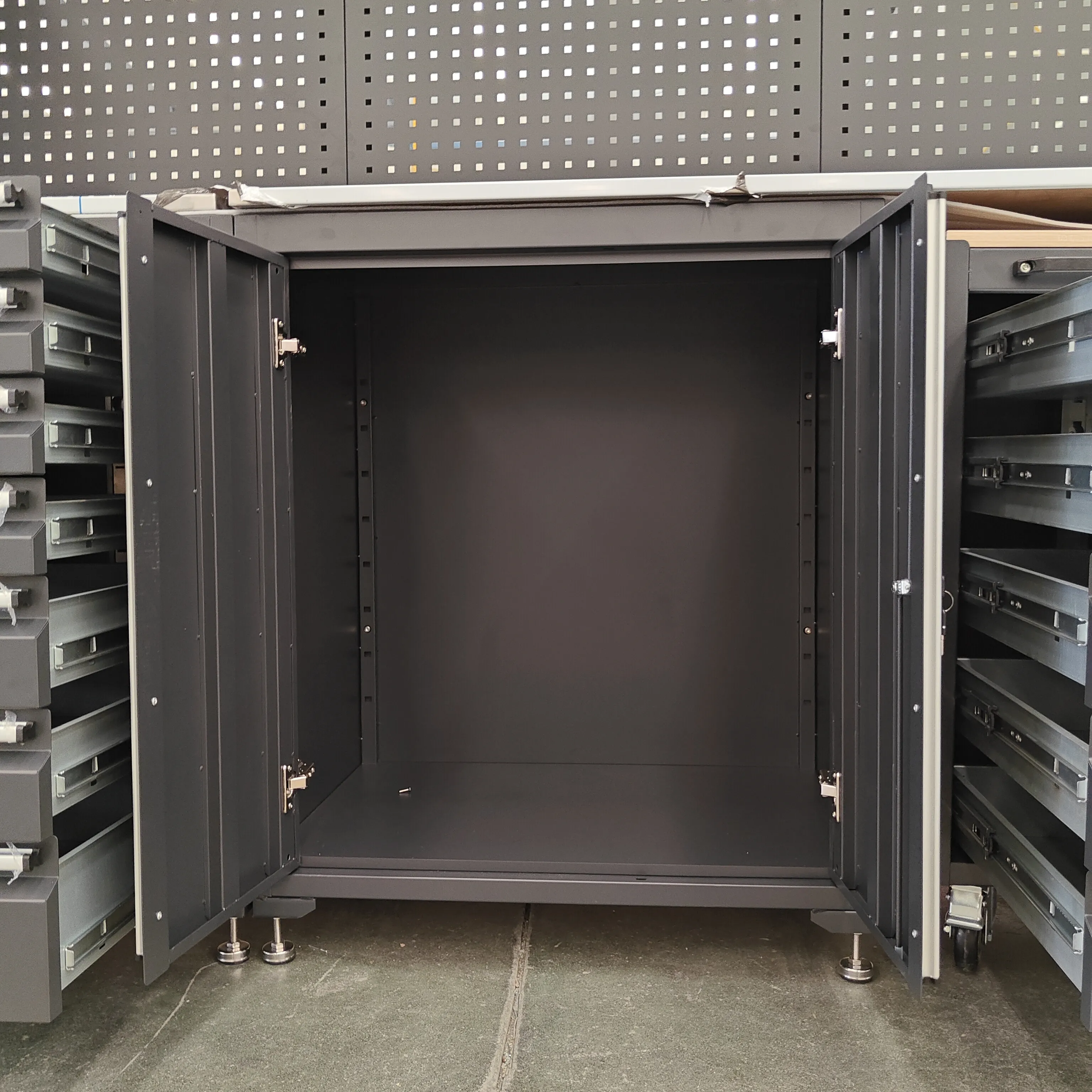 Ciężka szafka narzędziCYJYjest wykonany ze stali zmiennej klasy przemysłowej o pojemności obciążenia do 500 kg. Jest odporny na rdzę i odporny na zużycie.