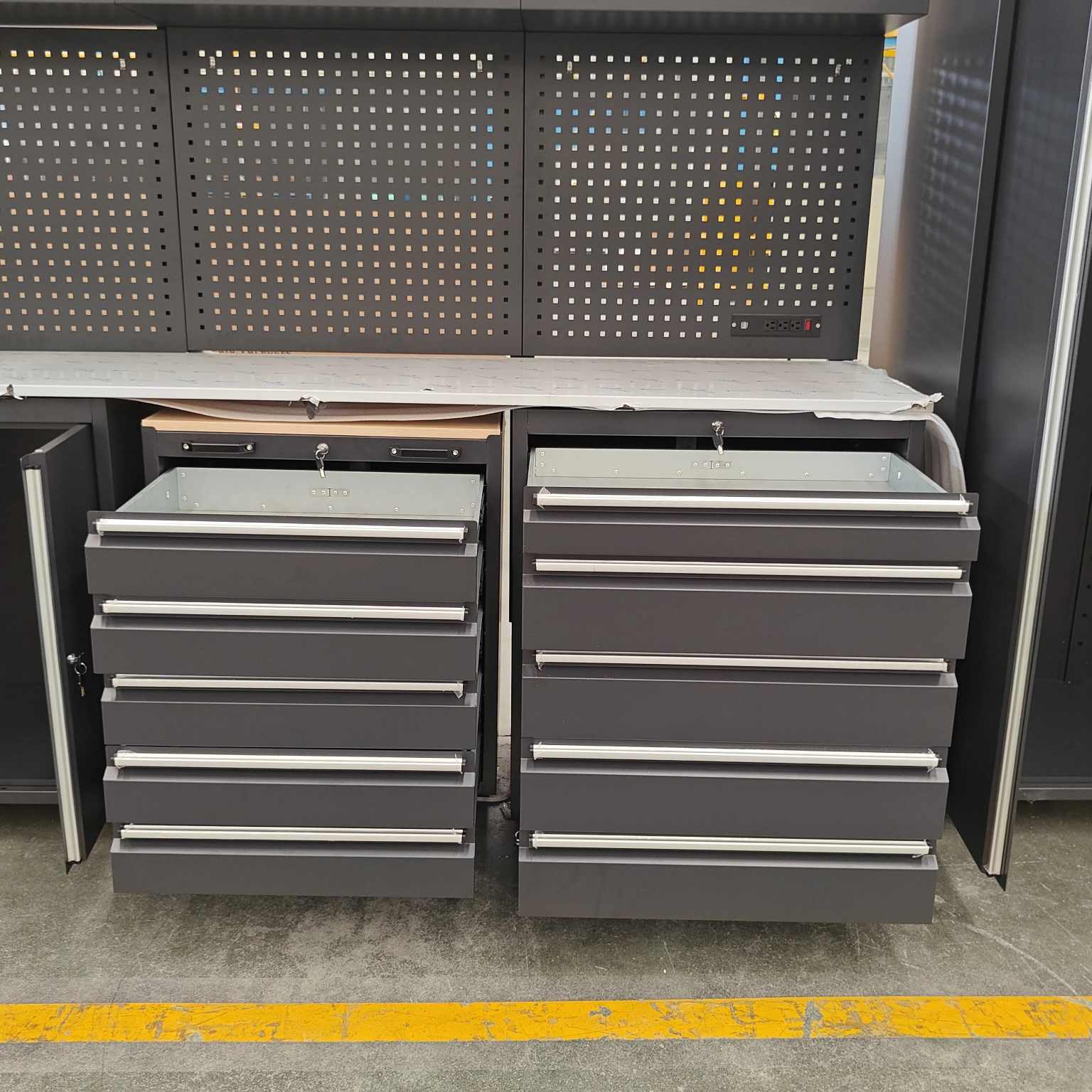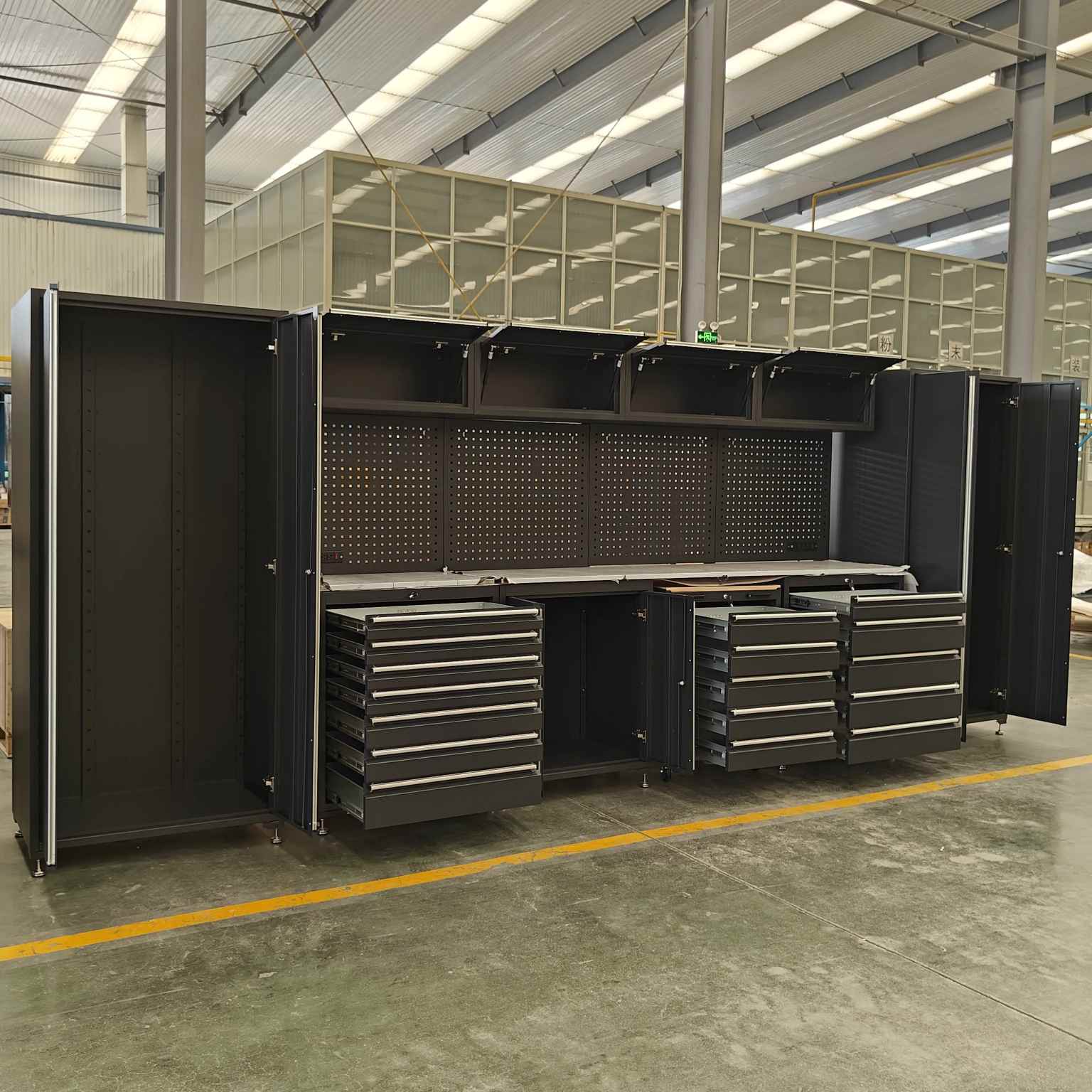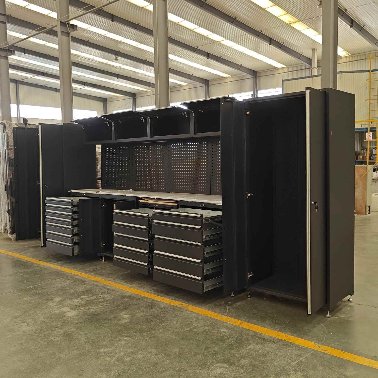Ciężka szafka narzędziCYJYjest wykonany ze stali zmiennej klasy przemysłowej o pojemności obciążenia do 500 kg. Jest odporny na rdzę i odporny na zużycie.