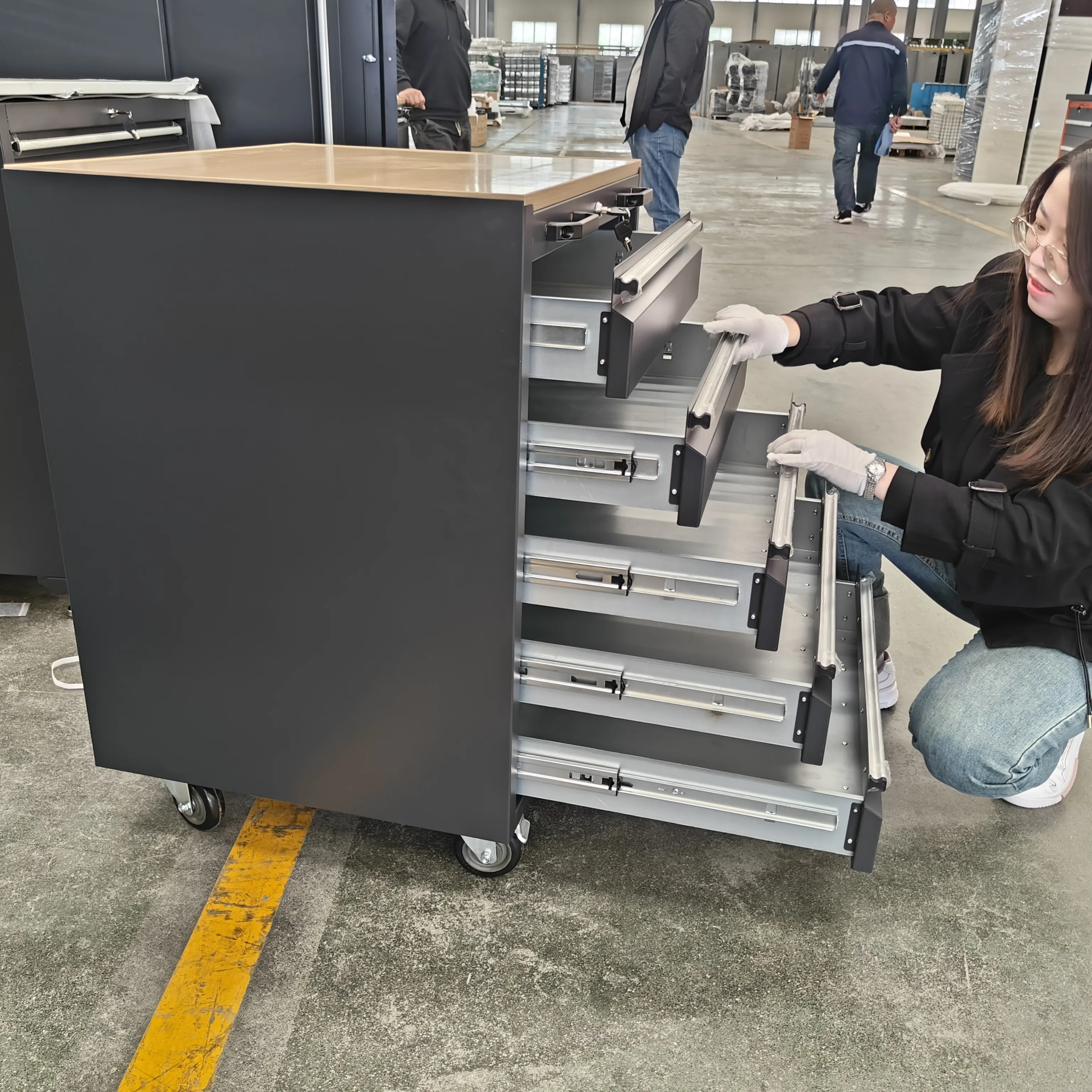 Szuflady ciężkiej szafki narzędziowej są wyposażone w ciche ślizgowe szyny, zapewniając hałas podczas otwierania lub zamykania szuflad.