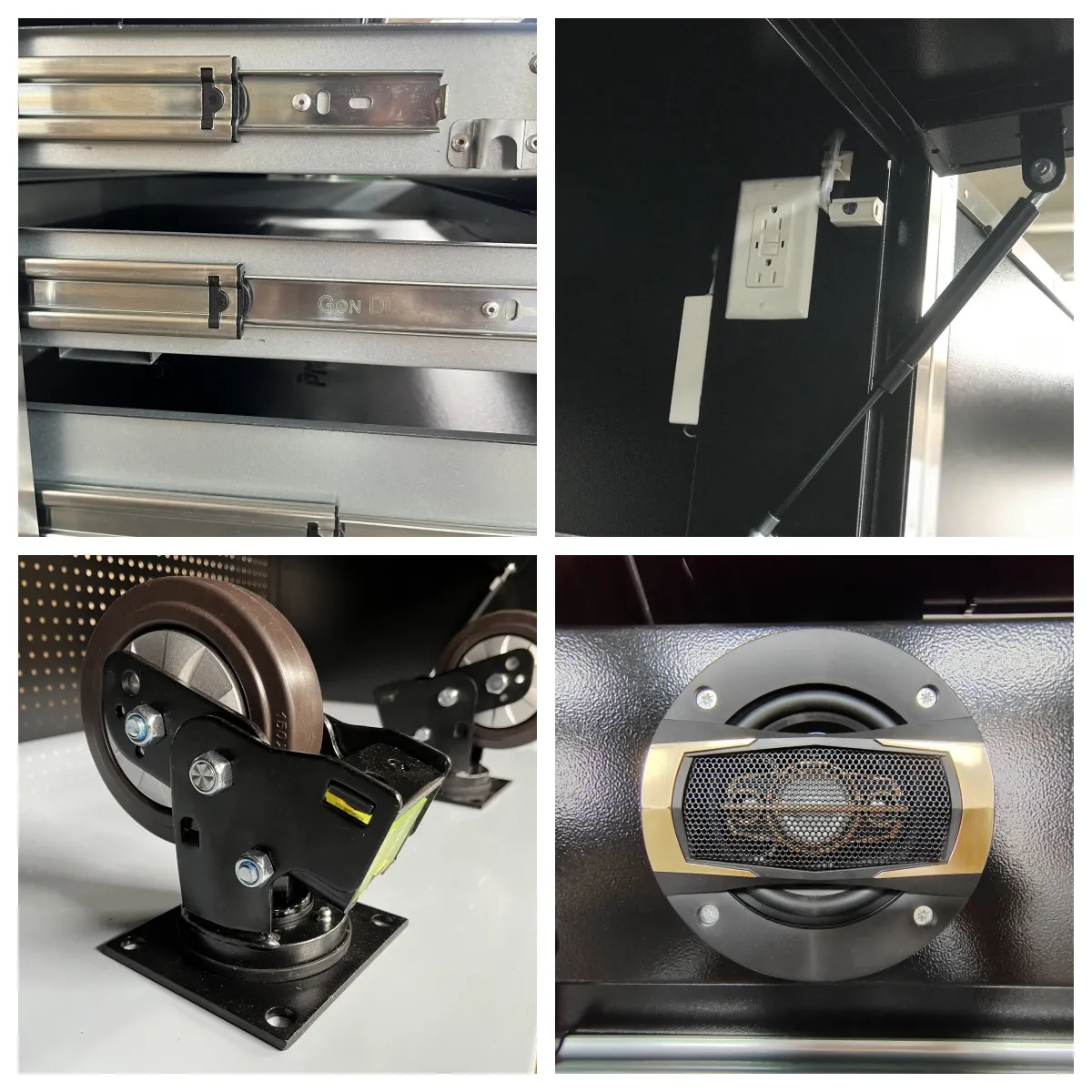 Szafka narzędzi modułów to system magazynowania narzędzi złożony z wielu niezależnych modułów. Każdy moduł ma określone funkcje i przestrzenie do przechowywania, takie jak moduły szuflad do przechowywania małych narzędzi i modułów drzwi szafkowych do obywania dużych narzędzi lub sprzętu. Użytkownicy mogą swobodnie łączyć te moduły w oparciu o ich faktyczne potrzeby utworzenia spersonalizowanego systemu przechowywania narzędzi. W porównaniu z tradycyjnymi zintegrowanymi szafkami narzędzi, oferuje większą elastyczność i zdolność adaptacyjną, umożliwiając regulacje zgodnie ze zmianami ilości i rodzajów narzędzi, naprawdę osiągając spersonalizowane dostosowanie.