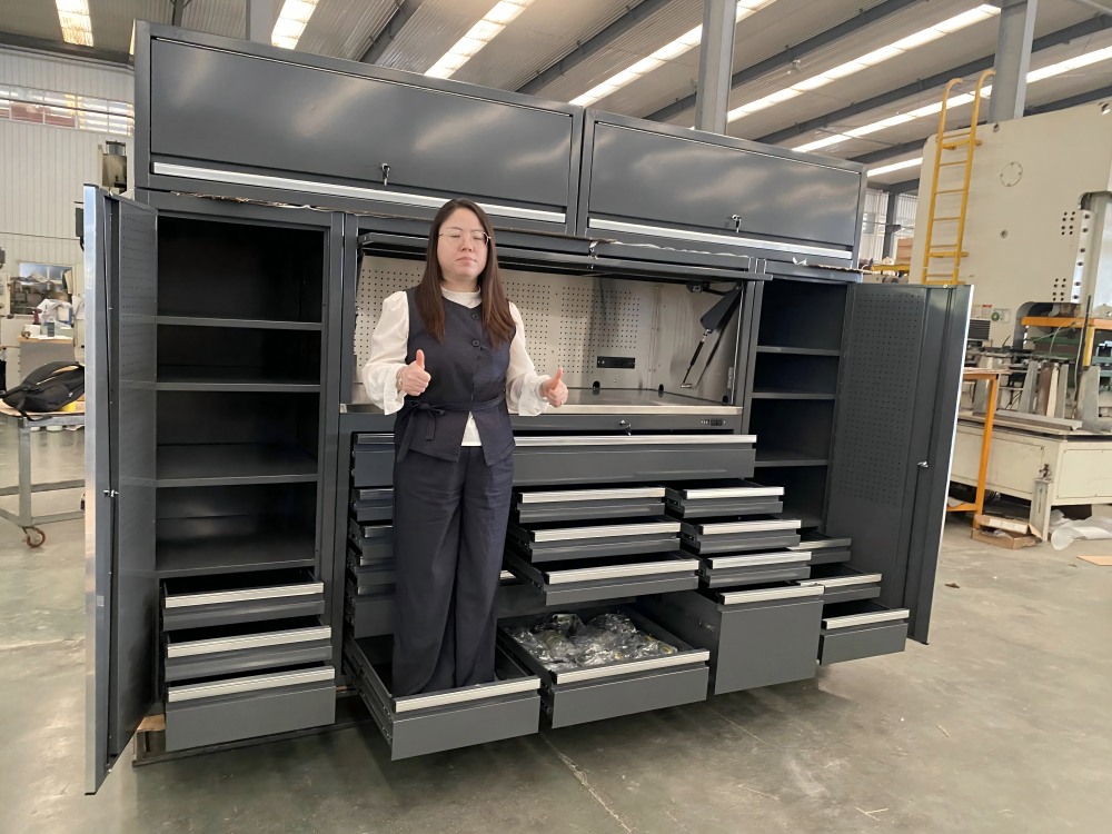 Nowe szafki garażowe to nowe szafki zaprojektowane przez Cyjy dla naszych klientów. Główna ramka nowych szaf garażowych wykonana jest ze stalowej płyty ze stalową 1,5 mm o pojemności obciążenia jednorodnego 150 kg. Powierzchnia jest traktowana natryskiem elektrostatycznym, co zwiększa odporność na korozję o 40% i jest odpowiednia do wilgotnych środowisk.