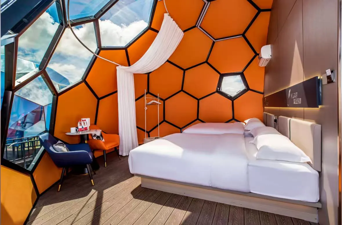 Udogodnienia w tym gwiazdowym domu kapsułki kosmicznej są bardzo kompletne. W środku znajduje się łóżko, toaleta, stół, sofa i oddzielna prysznic, dając ci poczucie domu. Projekt gwiazdy górnej kapsułki w Kapsułce jest oparty na świetnym pomyśle: pozwól ludziom czuć się blisko kosmosu, pozostając komfortowo. Ma specjalną okrągłą zewnętrzną skorupę, która może chronić ludzi w surowym środowisku. Wnętrze jest zaprojektowane jako przytulne, z wystarczającą ilością miejsca, aby ludzie mogli się łatwo poruszać.