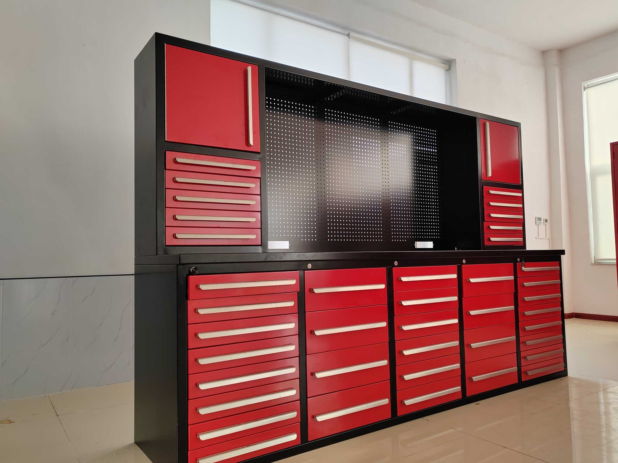 Zgrabna przestrzeń: nasz zestaw narzędzi narzędzi i szafki pomaga starannie układać przedmioty. Są łatwe do znalezienia i oszczędza to również miejsce.